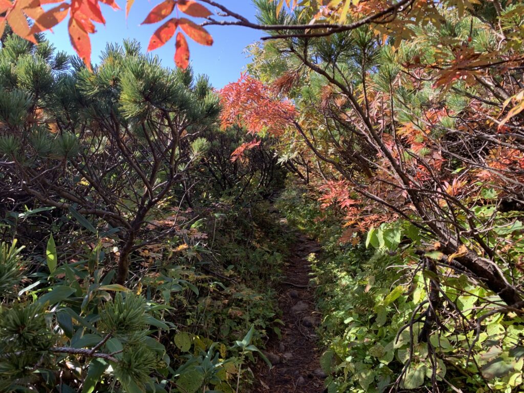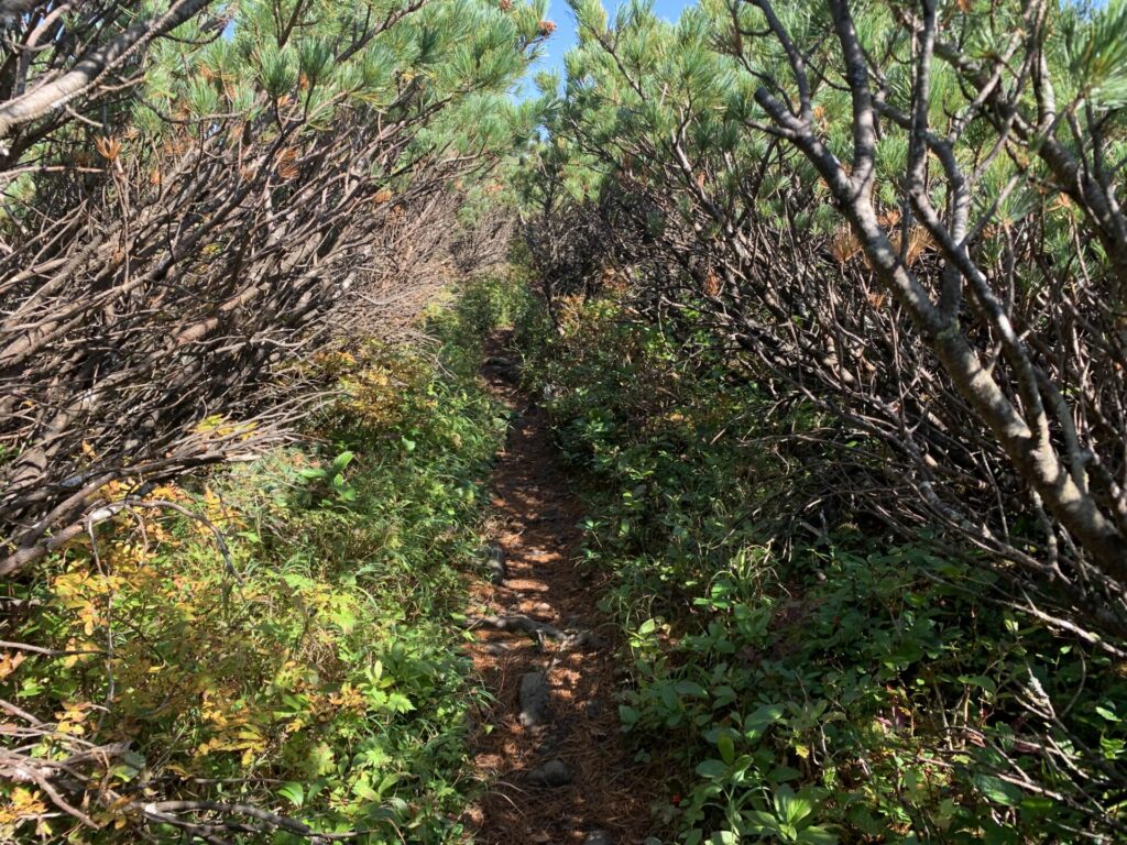 平坦なハイマツ群を進む。枝は、丁寧に切られている。