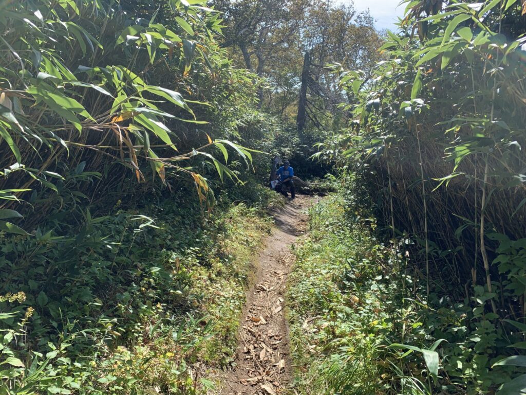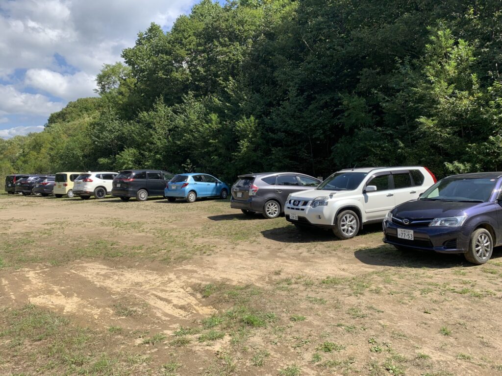 あふれた人はポロピナイキャンプ場に駐めたのだろう。歩道を歩いている登山者がいた。