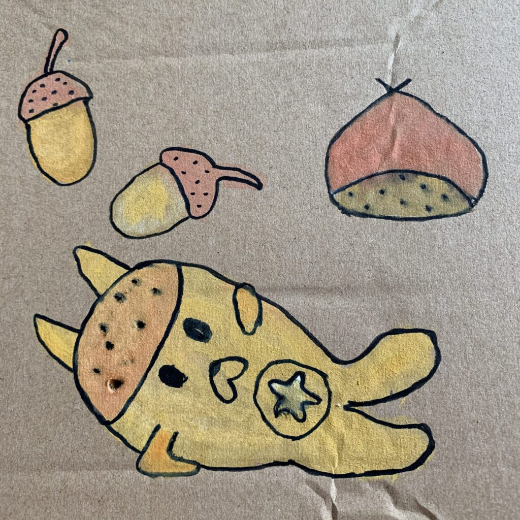 土曜の今日は、妻が日勤のため昼の娘の相手をする。品行が悪いのでSwitchを隠された娘が朝一からギャン泣き一応、一緒に探すふりをした。諦めたのか、ダンボールに水彩絵の具でほしタヌキのを書きたいと言い出したが...おとうさんもオリジナルのほしタヌキ...