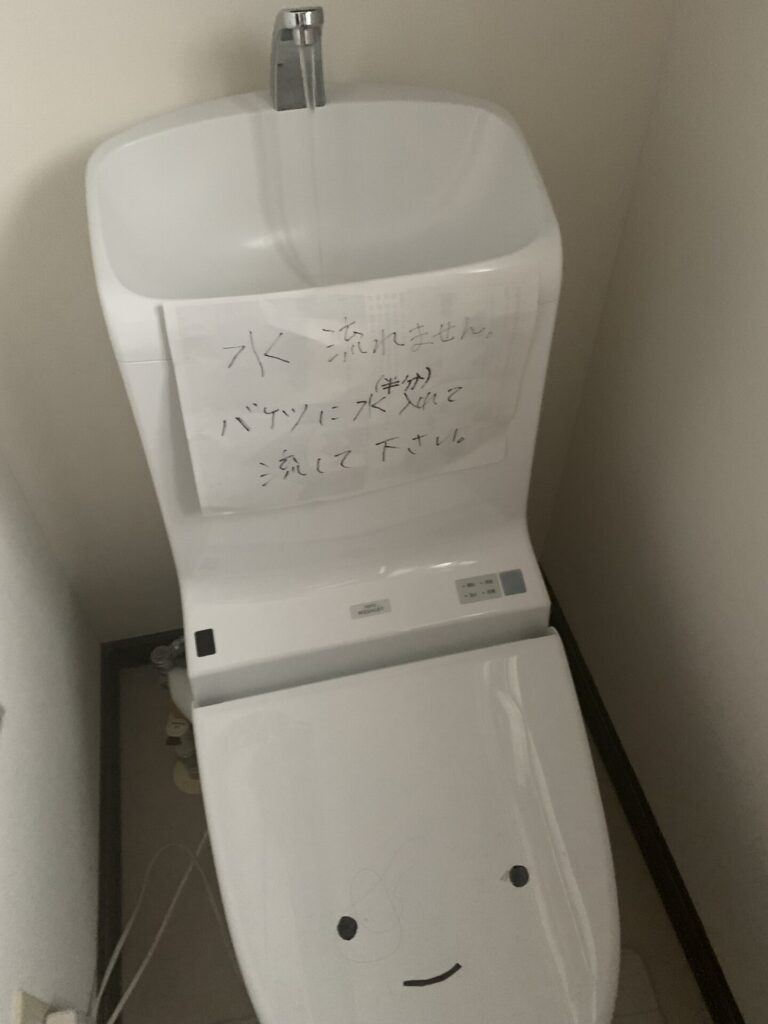 トイレで苦闘5時間!ドライヤーで温めてやっと開通 ▽ -