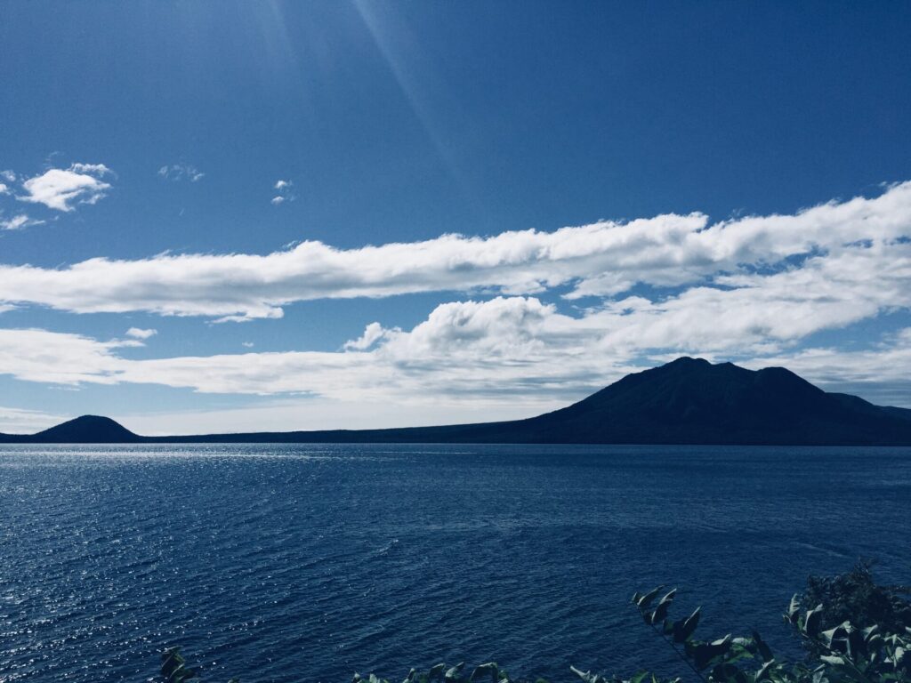 ▼丸駒温泉からの支笏湖 20180711_085121 posted by (C)ミント専門官 左端の小さいのがモラップ山右の大きいのが風不死岳樽前山、風不死岳、恵庭岳は一直線上に並ぶ!丸駒温泉は恵庭岳の麓にあるため樽前山は、風不死岳の陰となり見えない。 -