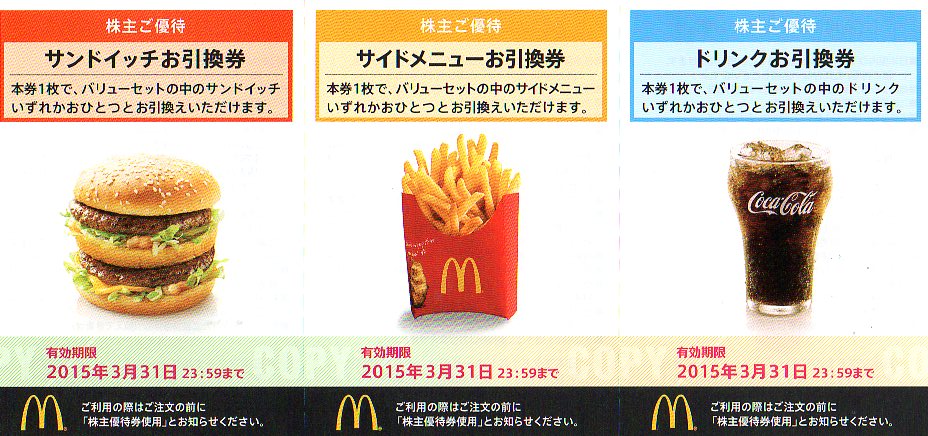 [2702.q_日本マクドナルドホールディングス] ▼株主優待券到着 6枚綴り*2冊 20150331_021916 posted by (C)ミント専門官 -