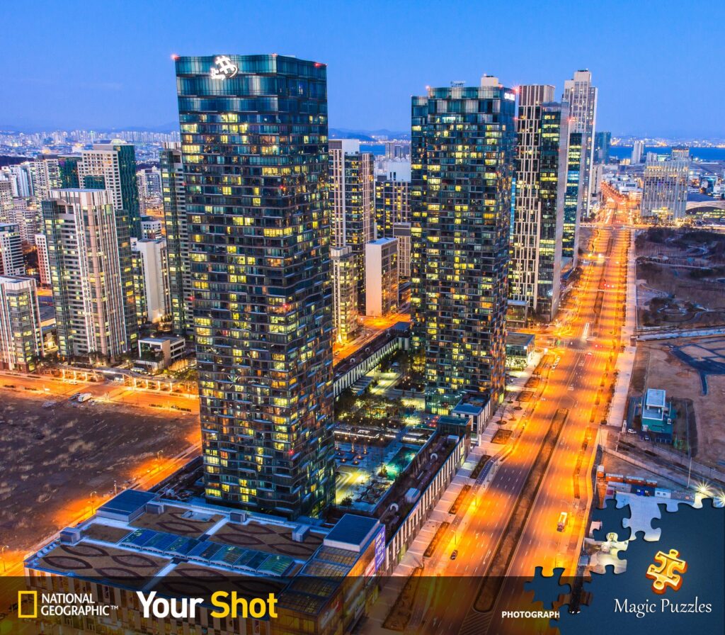 今日のジグソー「A nighttime view of the skyscrapers in Songdo」